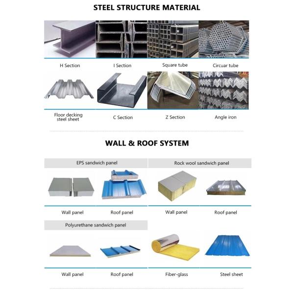 | Main Steel Frame | H section steel | Q235/Q345 steel 8mm/10mm |