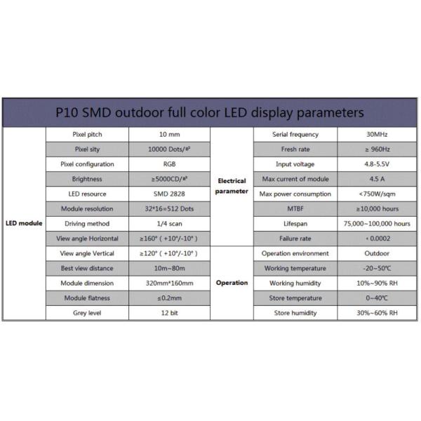 P10 outdoor SMD LED Advertising Panel Parameters: