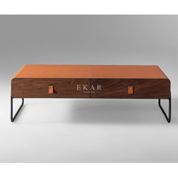 Italian Modern Style Fancy Leather Metal Legs Coffee Table