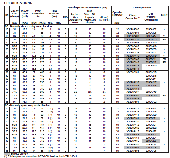 • The valves satisfy Pressure Equipment Directive 97/23/EC,