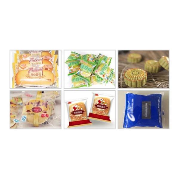 Applicable for packing various regular solid products, such as moon cake, bread, biscuit, candy, cake, custard pie, fruit pie, medicine, plastic goods, paper box or any others loaded in tray.