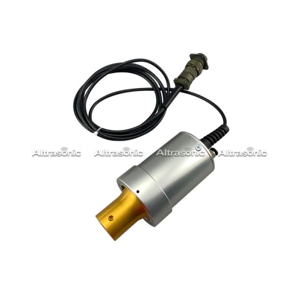 The transducer converts high-frequency electrical energy into high-frequency mechanical vibrations. And it contains several piezoelectric ceramic discs sandwiched under pressure between two metal blocks. Between each disc is a thin metal plate, which forms the electrode. When a sinusoidal electrical signal is fed to the transducer via the electrodes, the discs expand and contract, producing axial vibrations.