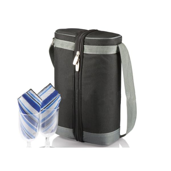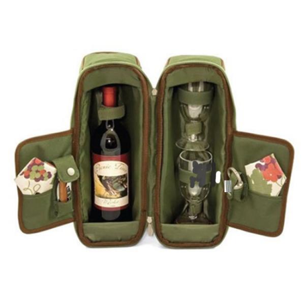 Customized wine picnic bag with strap for one wine bottle and two glass bag
