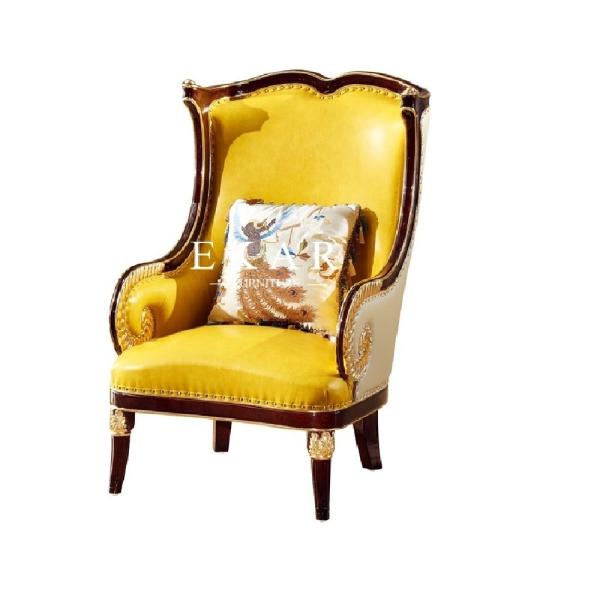 Living Room Luxury Wooden Frame Classic Leather Leisure Arm Chair