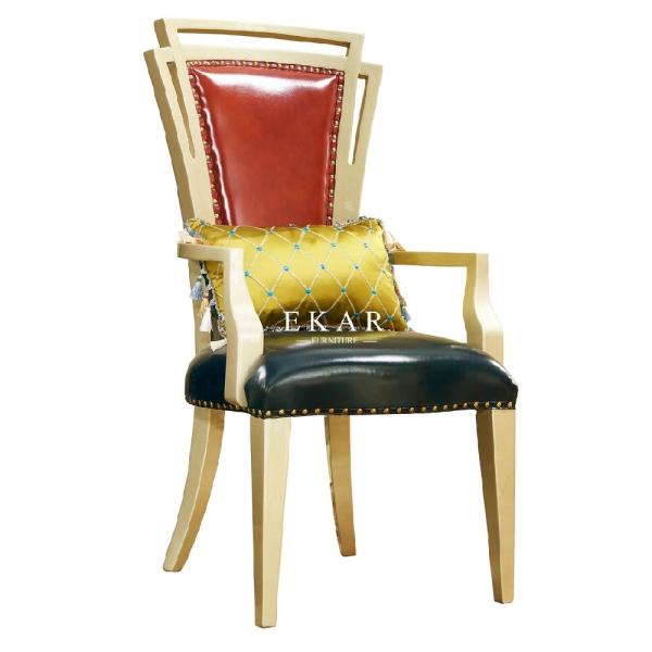 Luxury Classic Living Room Wooden Frame Leather Antique Leisure Arm Chair
