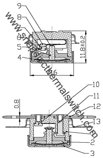 | 8 | KSD301-08 | Ø3.5moveable contact point | AgCd012/Cu | 1 |