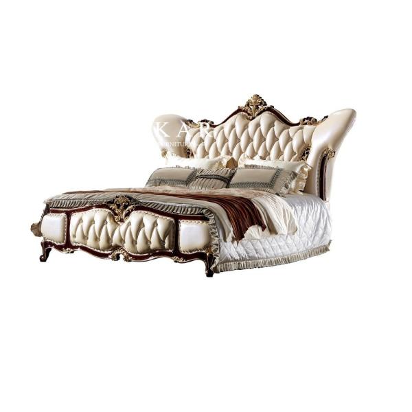 Buy Luxury Antique European Design Upholstered Leather Wooden Carving King Size Bed at wholesale prices