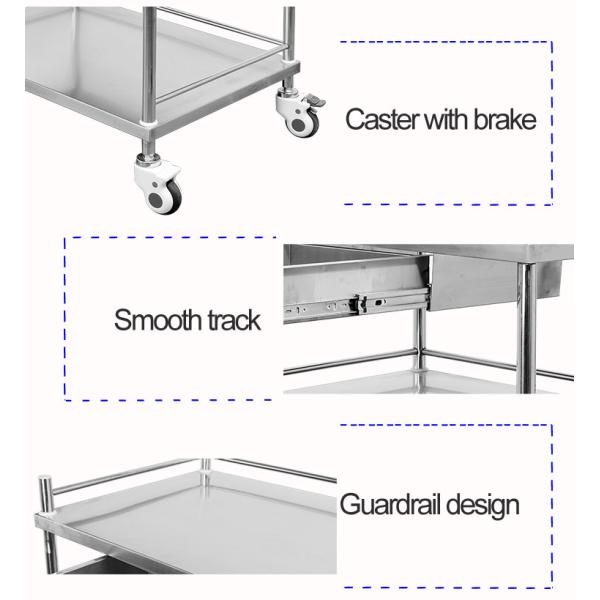 Stainless Steel Surgical Instrument Trolley Three Shelves One Drawer On Caster
