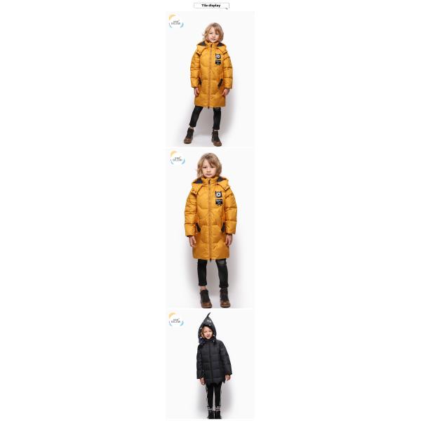 Double-open zipper: The long down jacket usually goes to the child's knee. The double-open zipper ensures that the child can walk up, run, and move the zipper up to a certain position, so that the legs have sufficient space for movement.