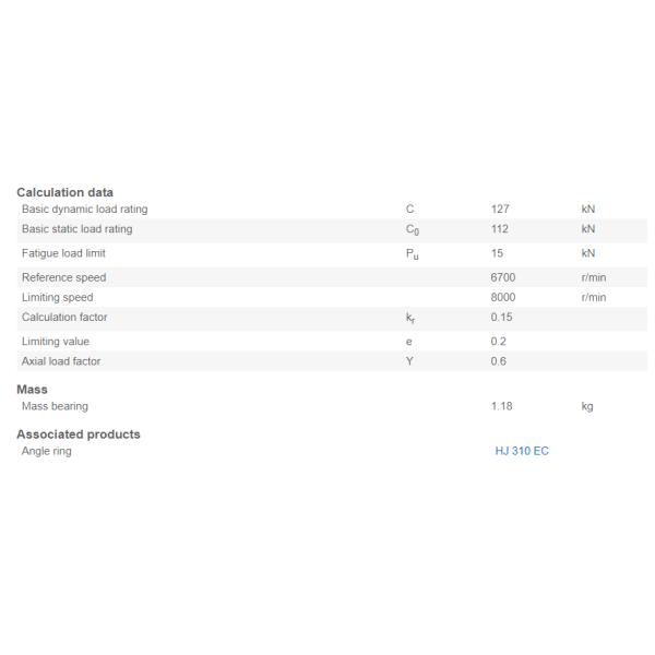 | NJ2310 | NJ2310M | 50 | 110 | 40 | 155000 | 185000 | 5300 | 6700 | 1.79 |