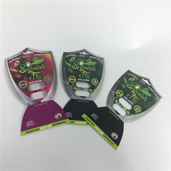 Customized green spanish Fly Male Enhancement Capsule Pill Blister Paper Cards with bullet