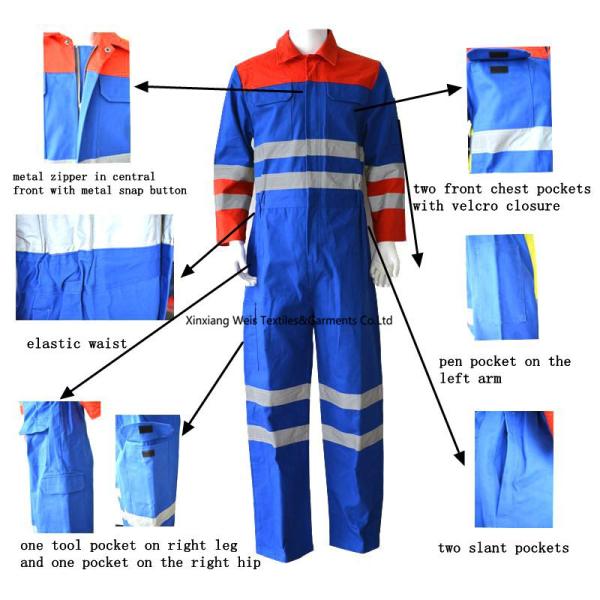 With good quality comfortable pure cotton fabric, this Reflective coveralls can be the daily workwear for shipyard, transportation,electrical