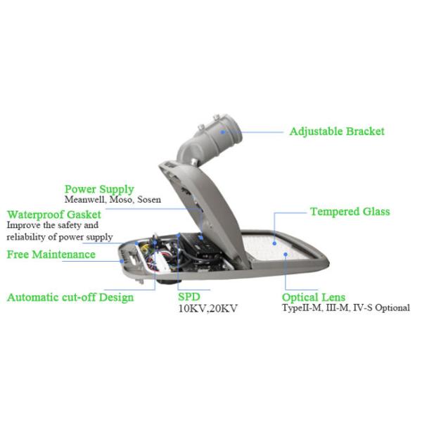 Optical lens design. Type II-M,III-M,IV-S optional.Uniform lighting distribution apply to different lighting projects.