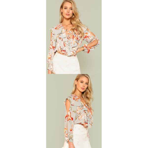 | Design: | Deep V neck design, Long sleeve, Floral print, Split sleeve | |