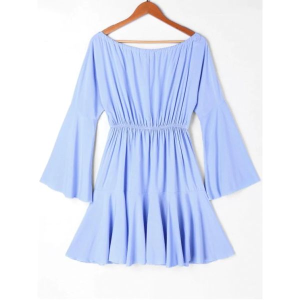 Buy Blue Off Shoulder Mexican Embroidery Beach Casual Dress Women at wholesale prices