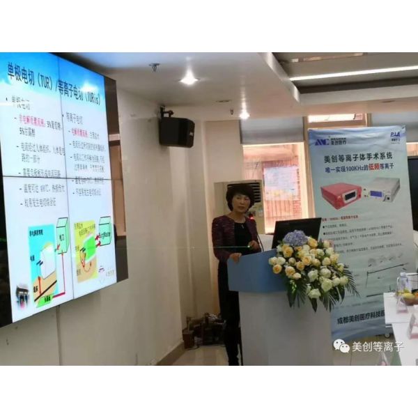 The system transmits the energy to the electric conduction liquid (e.g. normal saline), which is close to or on the surface of target tissues. The electric conduction liquid forms a thin layer between working electrode and circuit electrode. The electric conduction liquid, given with enough energy, can transform to a steam layer (i.e. plasma) containing charged particles with energy. When the high energy charged particles contact target tissues, it will realize tissue disintegration by molecular dissociation. Compared with the conventional electrosurgical system, by this kind of working model, the temperature generated at the target tissues is much lower, thus bringing less collateral damage to the surrounding tissues. While the unit functions will vary if the given voltage between the working electrode and target tissues is lower. In this case, the electric field is lower than the value required for forming plasma, and resistance heat at the tissues is generated. This model is used when stronger heat effect is required, e.g. for coagulation of blood vessel or other vessel tissues. According to the probe type, tissue status and expected treatment effect, to set suitable voltage.