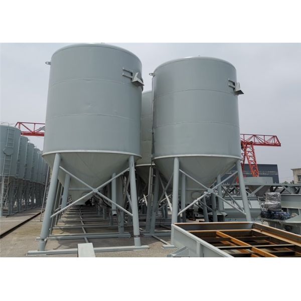 Cement silo is usually used in concrete batching plant to store bulk cement, and it is also the main part of concrete mixing plant. The accessories of the cement silo are dust remover, discharge valve, level indicator, pressure relief valve, steel structure parts, ladder, guardrail and so on.