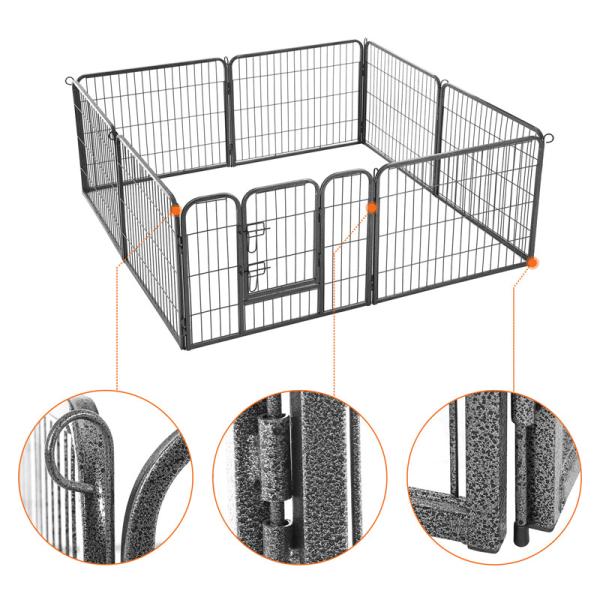 This detachable dog cage of FEANDREA with modular parts is the ideal choice for your pet, because it's more a dog park than a dog cage for its considerate design. For example, there is enough room for toys and a cushion, even for your dog to play in it freely. And the L-shaped door bolts ensure high safety, and with its scientific design, it can be assembled and disassembled without tools, taking up little room when disassembled for storage. With rounded edges and corners on this cage, so your pet will not get injured unwittingly. This item is extremely durable and comfortable, so it's indispensible anyone keeping pets.