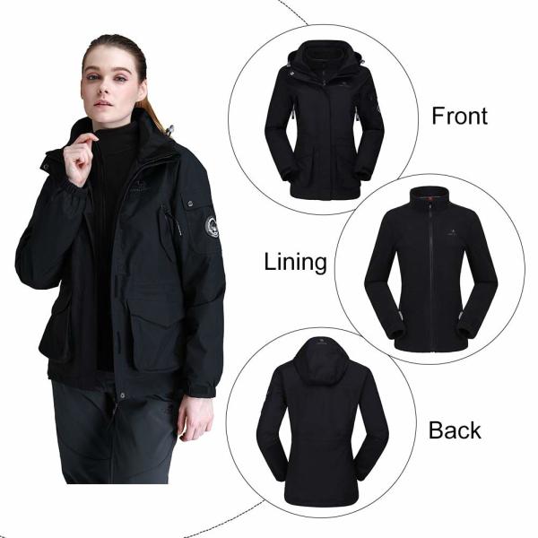 3 In 1 Waterproof Ski Jacket Black Color 100% Polyester Material For Rain Snow Hiking