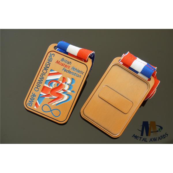 Antique gold metal finish, soft enamel medaille with woven ribbon at competitive price and DHL delivery