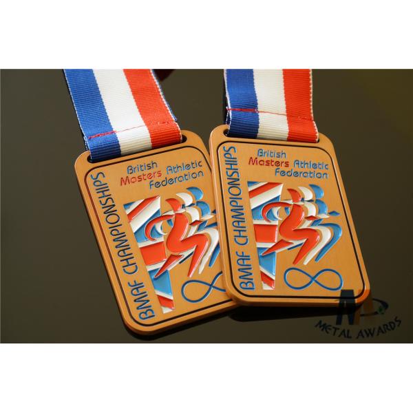 Die Casting Mold medals, 3D effect on Runners. Zinc alloy materail and the size of medal is 80MM and 5MM thickness both size, front side with logo customed and blank back, the back can be engraved name or number. The ribbon is sublimated full color ribbon and size is 850*25MM