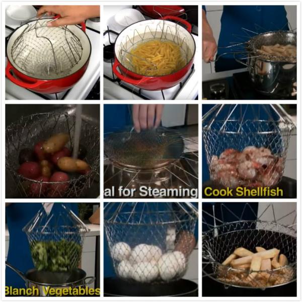 features of stainless steel chef basket for home kitchen: