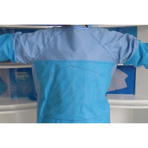 Anti Static Blue Isolation Gowns , Disposable Hospital Gowns Knitted Cuff / Cotton Cuff