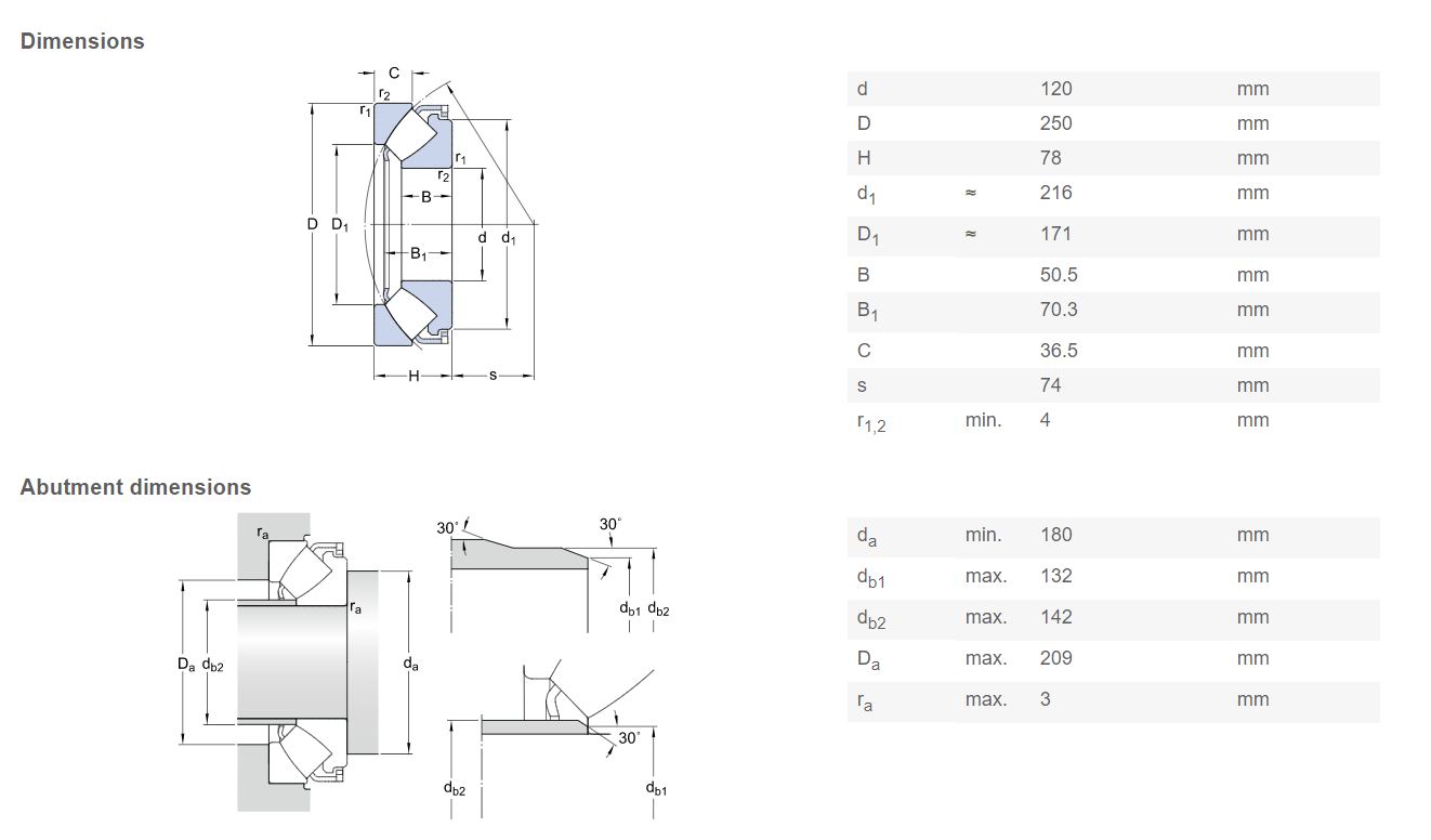 Spherical roller thrust bearings are produced in two designs depending on the size and series.