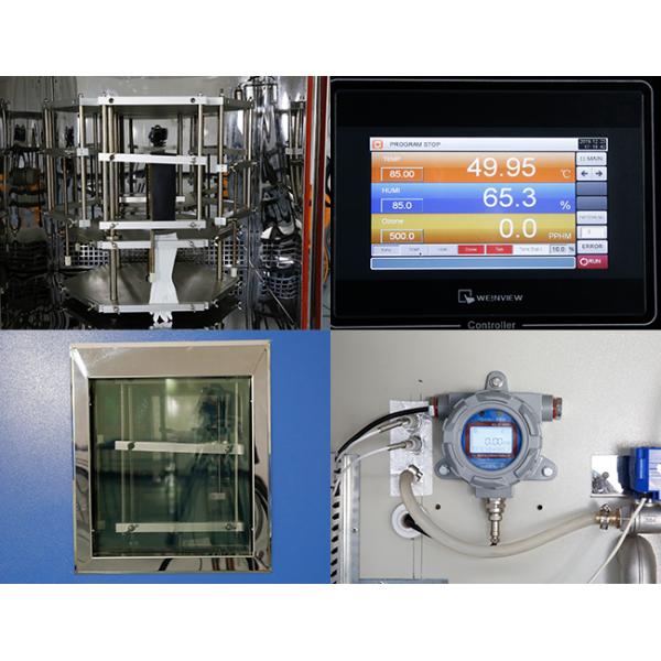 Electronic 500 pphm Rubber ozone chamber,Rubber Testing Instruments can be used to test rubber products with static tensile deformation, such as vulcanized rubber, thermoplastic rubber, cable insulating bush; Expose the test specimens to the sealed air in the ozone chamber without light and with constant ozone concentration and constant temperature according to predetermined time, and then observe the cracks on test specimens’ surface and the degree of change of other properties to evaluate the rubber’s ozone aging resistance properties.