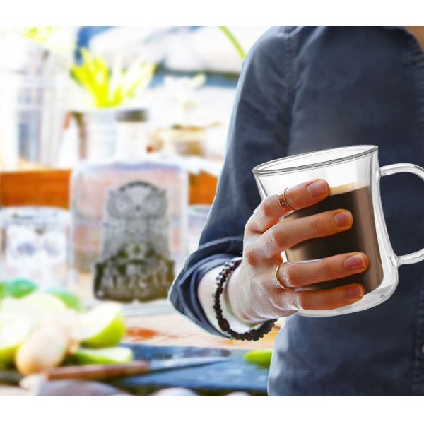 DOUBLE WALLED DESIGN - Made of heat and condensation-resistant borosilicate glass,Accept the temperature from -20C to 150"C.