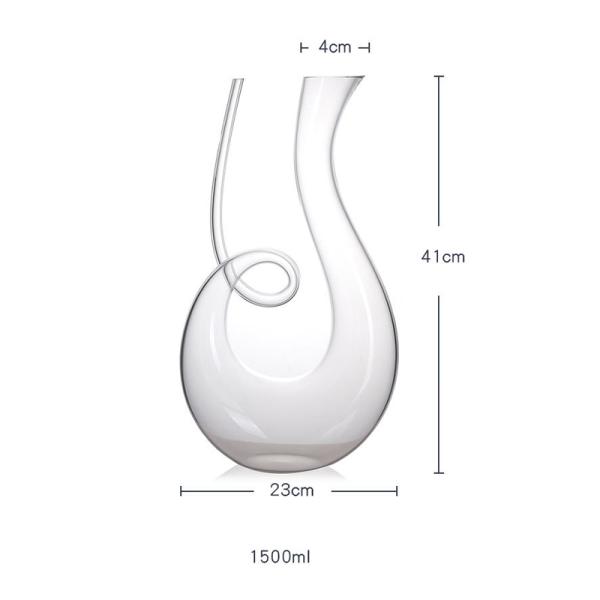 Holds up to a full 53oz of wine, about 2 standard Bordeaux sized bottles. An ergonomic neck and spout allows you to elegantly decant and pour any kind of red or white wine.