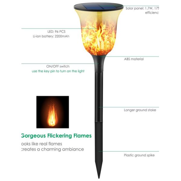 96 Led Garden Decoration Outdoor Ip65 Waterproof Solar Flame Buried Ground Lights