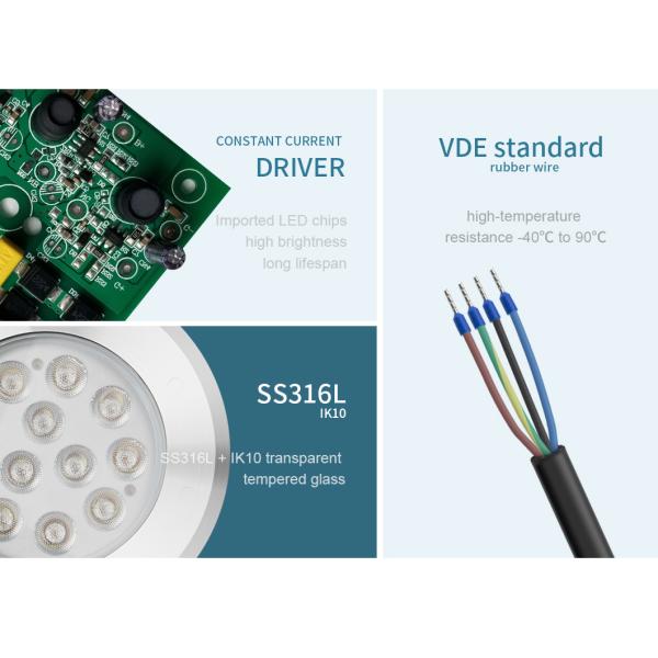 6. Stainless steel pool light with VDE waterproof cable with rubber sleeve, resistant voltage 2000V, temperature resistance at -40℃ to 90℃.