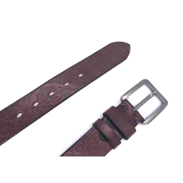 Vintage Embossed Leather Belt Mens Casual Leather Belt 1.5" Wide Brown