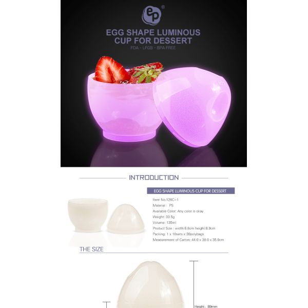 Party supplies high quality egg shaped 135ml ps plastic dessert luminous cup
