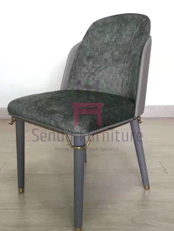 The chair's backrest frame in double level curved poplar and birch plywood. Differentiated density polyurethane foam filling the cushion and backrest. Gold color hardware surrounded base of the seater, the design make this simple design chair shows its unique.