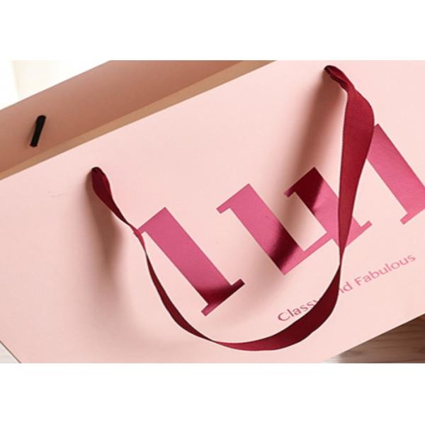 Ribbon Handle Printed Paper Carrier Bags With Strong Heat Resistant Glue Reinforce