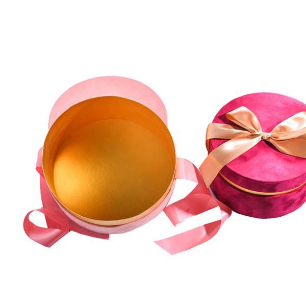 Round Glitter Velvet Jewelry Box , Suede Gift Box Stamping Logo With Top Ribbon