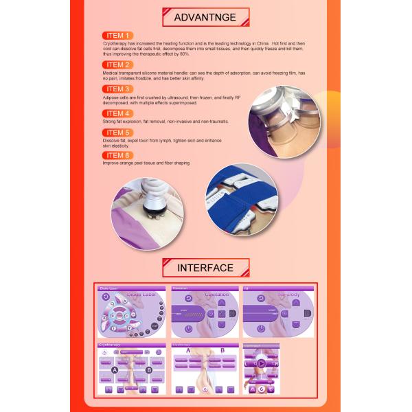 | Technology: | Cryo+RF+Cavitation+Diode Laser |