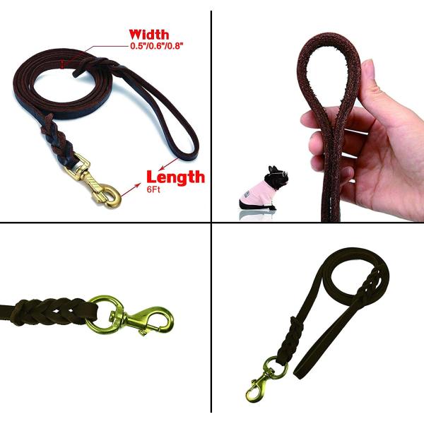 Brown Leather Dog Training Leash Braided Leash Lead Handmade for Hunting Training Dogs