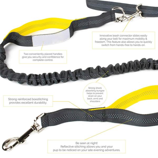 4 Feet Long Bungee Leashes for Dogs with Reflective Stitching and Adjustable Waist Belt