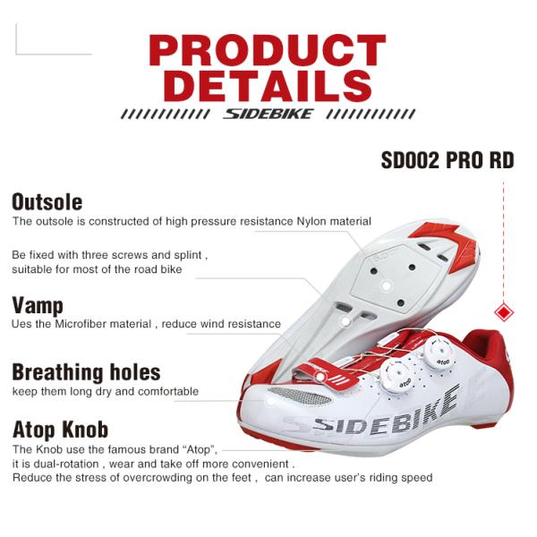 Sidebike Cycling Shoes offer strong resistance to ripping, laceration, stretching and fading. The reinforced heel keeps the foot in a optimal position and avoids the shoe being deformed by extreme performance or prolonged pressure.