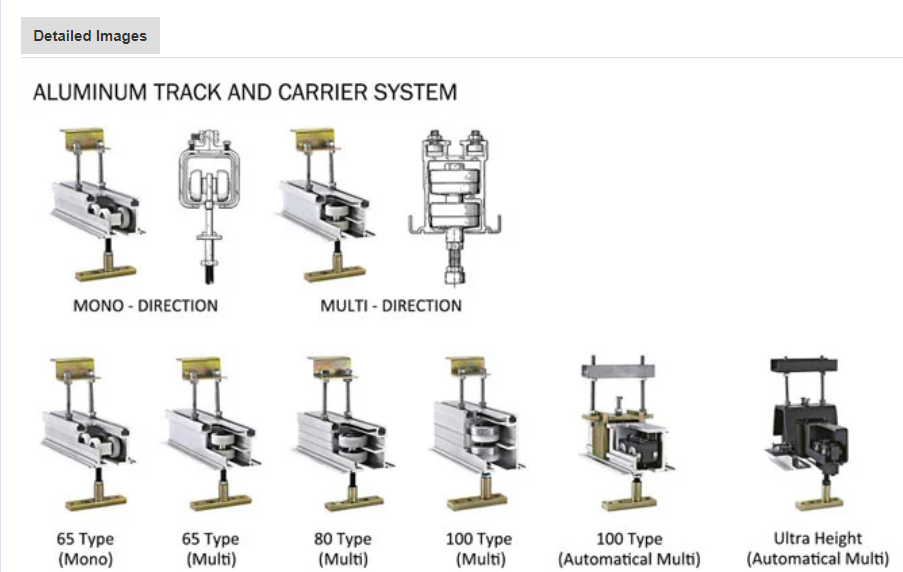 | Track System | Clear anodized 6063-T6 aluminum double track |