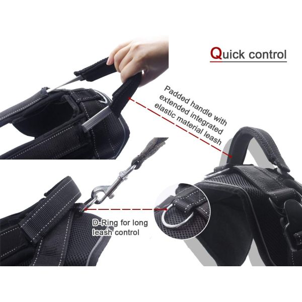 Heavy Duty Nylon Dog Harness, Prevent Pulling, Soft Padded with Special Extended Integrated Short Leash Design