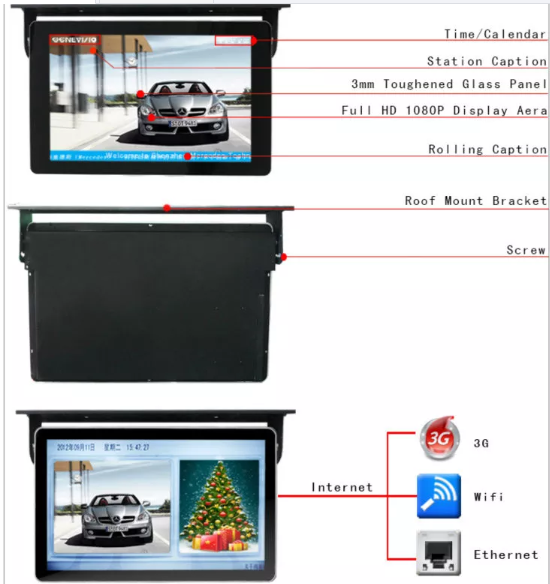 Wall Mounted Bus Digital Signage Lcd Car Taxi Hanging Advertising Display