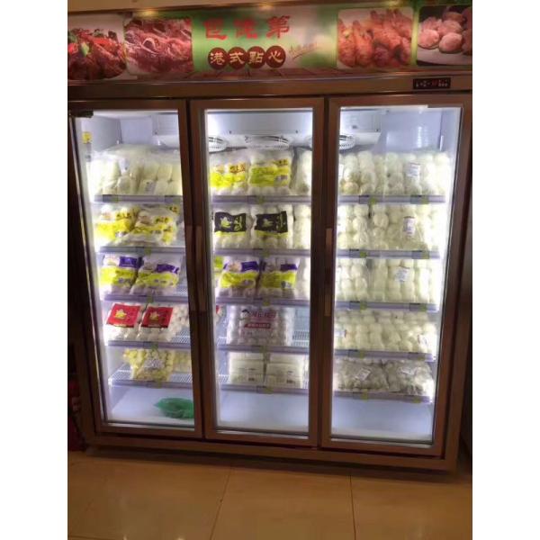 Silver Champagne Color Glass Door Freezer With 5 Layers Shelves Use In Supermarket For Frozen Food Sea Food
