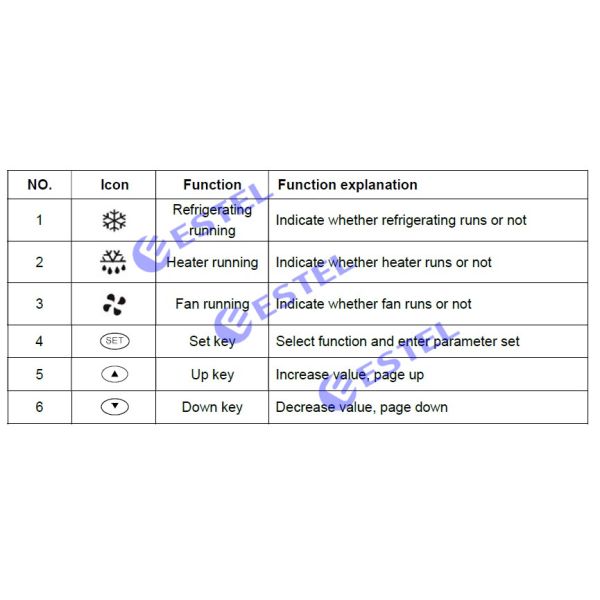 In the running states, the self-checking function can be activated by continuous pressing SET for 3 seconds.When Self-check, the screen will be full display for 1S, and then will normally display cabinet temperature, while the boot icon will blink.