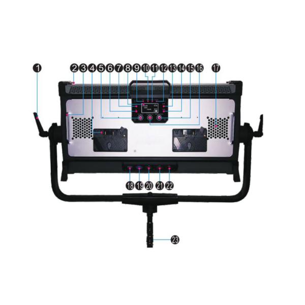 15. Brightness/Group/Channel/DMX Setting | 16. Color card/color temperature/Color phase knob |