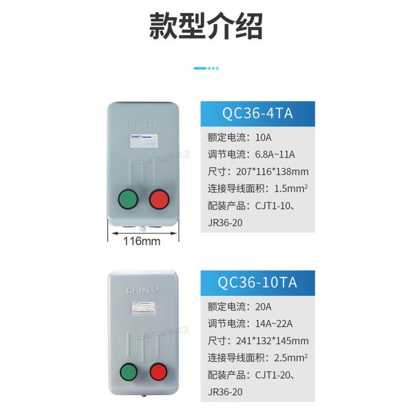 Chint QC36 AC DOL-Direct-On-Line Magnetic Motor Starter 3P, 4P 1A~63A,4-63kW AC-3380V for Squirrel Cage Motor