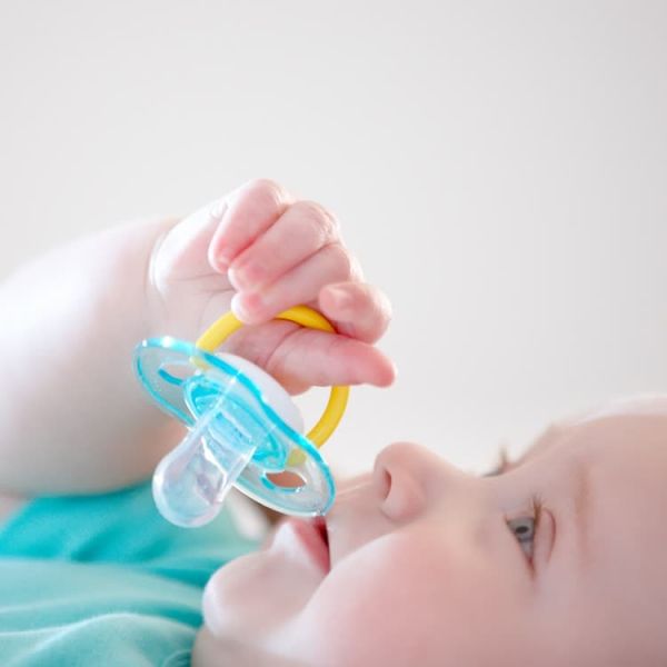Orthodontic symmetrical collapsible nipple so right side up or upside down, our pacifiers help ensure natural development of teeth and gum, Taste and odor-free silicone nipple makes for an easy transition between pacifier, breast and bottle, Includes two pacifiers, ideal age range: 6-18 months, Warning: Do not tie pacifier around child's neck as it presents a strangulation danger, Colors and designs may vary.
